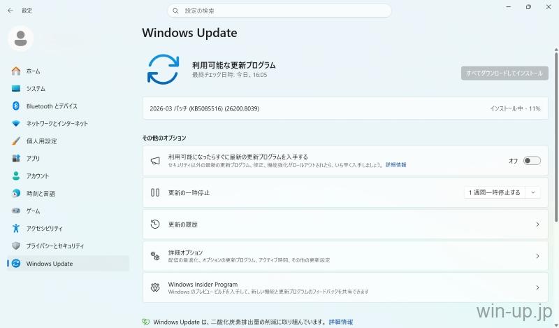- 一覧に「KB5085516」が表示されていればインストール可能