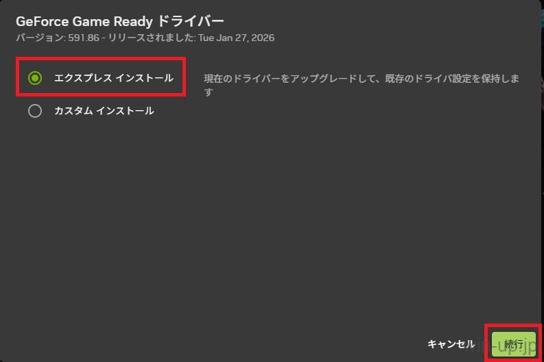 - 「エクスプレス インストール」を選択して「続行」をクリックします。